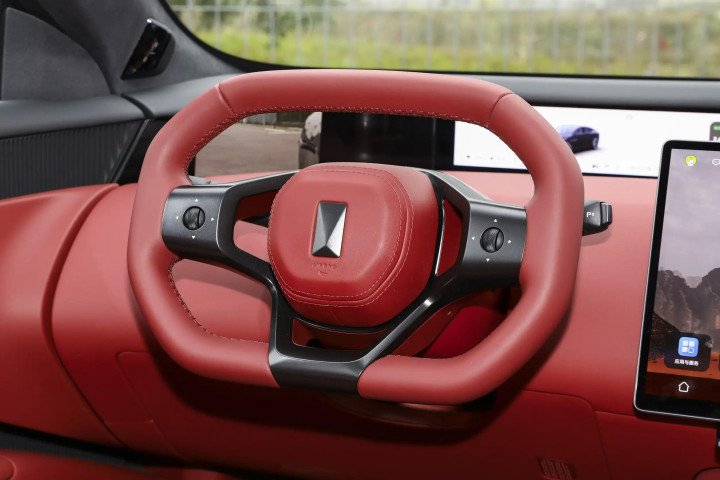 方向盘是椭圆形的,握感很非常,比圆形方向盘更贴合手掌,长时间握也不觉得累。电子外后视镜的显示屏藏在门板上,比常规后视镜视野宽,雨天的时候不会像镜片那样挂水珠,看后方很清楚。智能升降快充浮岛也很实用,手机放上去会自动下沉一点,还带散热风口,充电的时候不发烫,我试了下,iPhone 15 放上去,半小时充了 50%,比家里的无线充电器快。