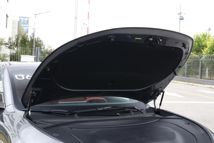 车尾的贯穿式 LED 尾灯支持动态迎宾,解锁的时候会流水闪烁,挺有仪式感。智能电动升降尾翼是全系标配,速度超过 80km/h 会自动升起来,据说能增加下压力,开高速的时候感觉车身更稳;也能手动控制,停车的时候升起来拍照,看着非常酷。还有个有意思的设计:取消了常规后舷窗,用流媒体后视镜看后方,车尾线条更简洁,而且流媒体后视镜在雨天、晚上看后方都很清楚,比常规后视镜视野宽多了。